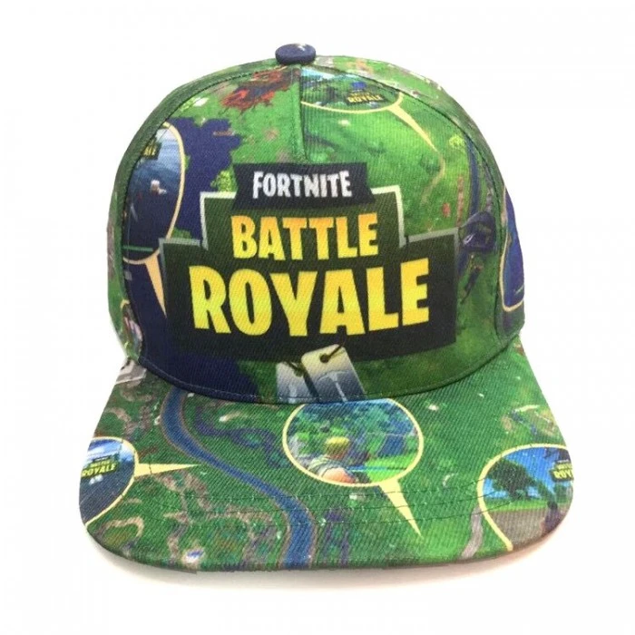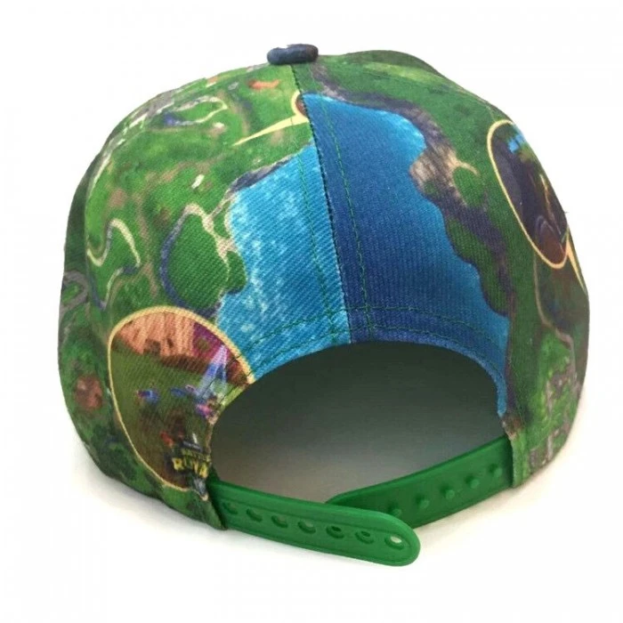 Design : Map de la Battle Royale imprimĂ© sur l’ensemble de la casquette + logo « Fortnite Battle Royale » sur le devant de la casquette