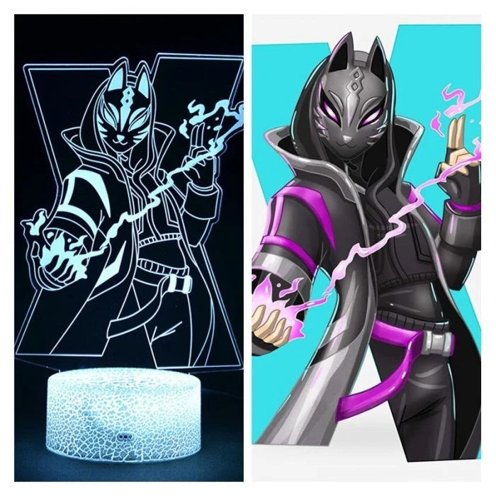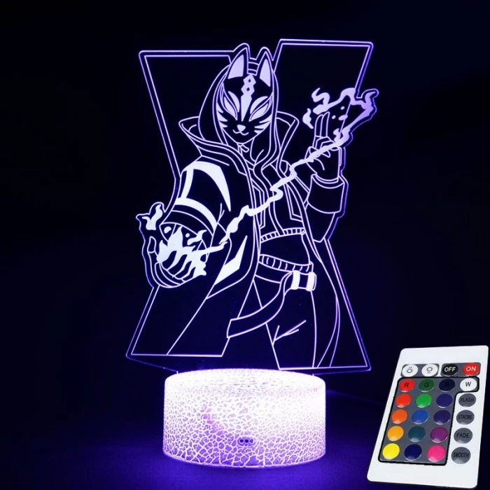 Motif de la lampe : Skin Déclic avec son masque devant le X de la saison 10. Dernière évolution du Skin Déclic (Stage 4).