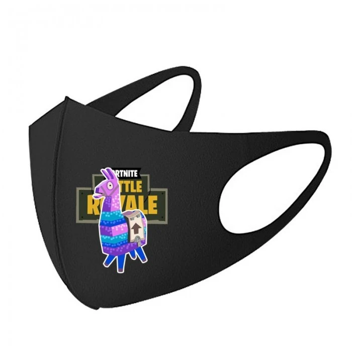 Design : Masque Lama Fortnite devan le logo Fortnite Battle Royale