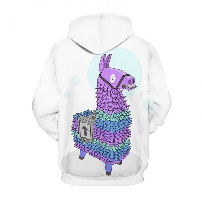 Design/Motif Fortnite : Lama violet/rose en grand sur le devant du sweatshirt blancÂ