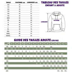 Recommandation : Pour les tailles adultes, veuillez prendre une taille au dessus de votre taille habituelle (Si vous portez habituellement du S, choisissez une taille M)
